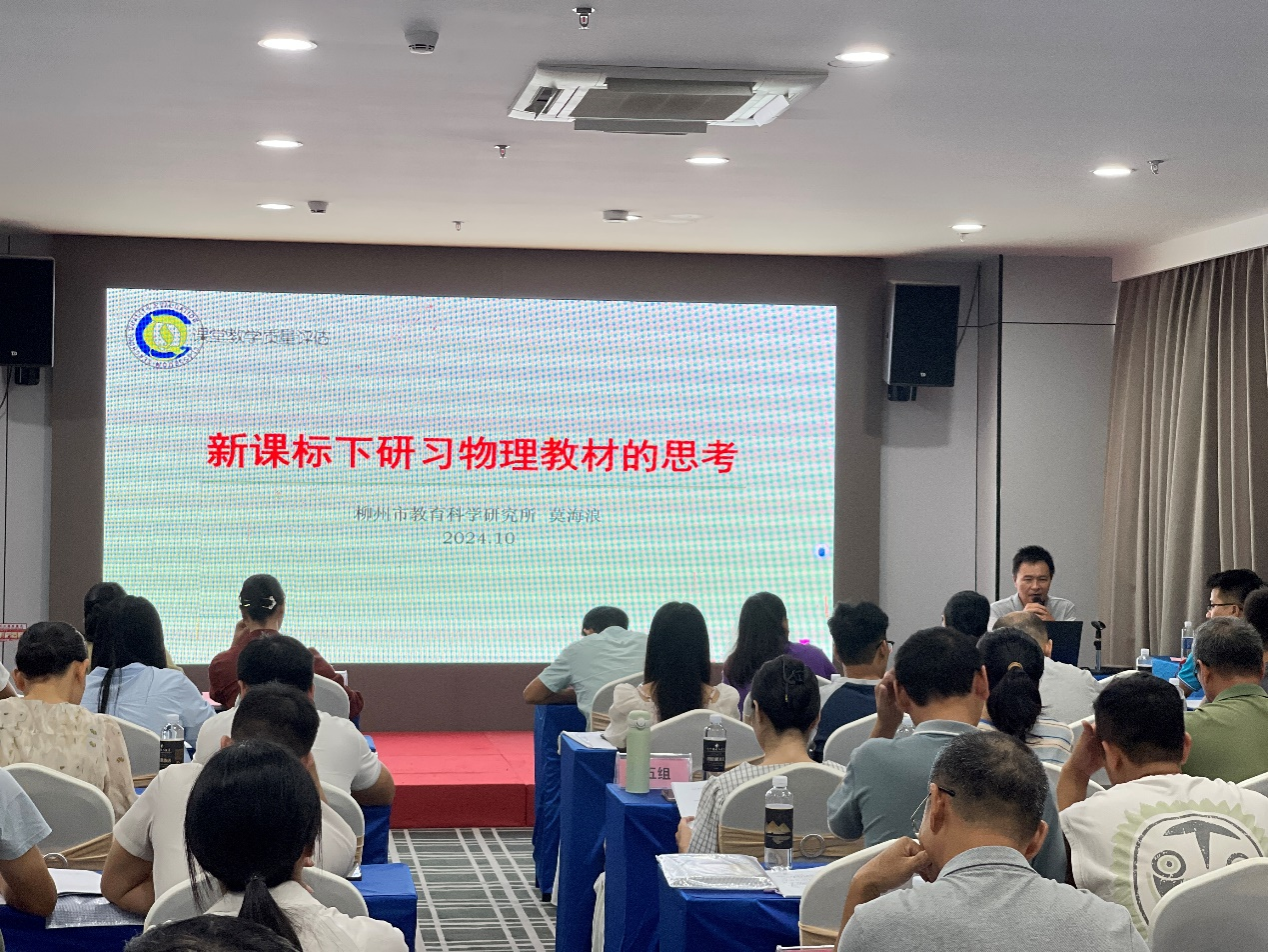 随后,柳州市教育质量监测中心副主任、物理教研员、中学正高级教师莫海浪作了题为《新课标下研习物理教材的思考》的专题报告。报告紧密围绕当前课程改革的新趋势,结合新课程标准与新教材的实际应用,深刻剖析了初中物理教学中面临的问题与应对策略,为参训教师提供了宝贵的启示与思考。