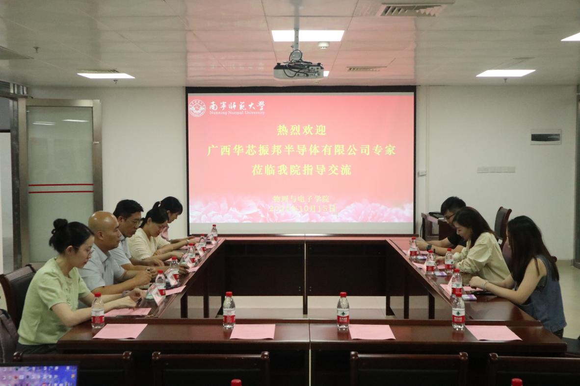 随后,我院与广西华芯振邦半导体有限公司在学院会议室1517召开座谈会。167net必赢入口副院长陈东(主持行政工作)、党委副书记胡芸、副院长李光明、院长助理徐艳华、院长助理曾倩以及电子系部分教师参加了座谈会。陈东副院长首先对广西华芯振邦有限公司胡婷处长一行的到来表示热烈欢迎,并详细介绍了我院在专业建设、科研、就业等方面情况,他表示,希望以此次座谈为契机,加强双方交流合作。胡婷处长详细介绍了公司情况,并表达了双方加强合作的意愿。随后双方围绕研究生培养、本科生实习见习、科研项目合作、合作开发课程和教材等方面开展交流,并就研究生联合培养基地建设达成初步协议。
