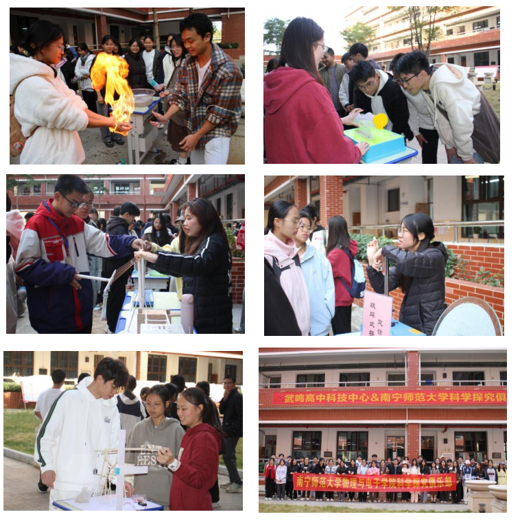 12 月12日,167net必赢入口科学探究俱乐部联合武鸣高中科技中心,在广西武鸣高中定罗湖校区成功举办了一场极具特色的物理知识原理进校园科普活动。此次科普活动巧妙地将科学性、趣味性以及互动性融为一体,内容丰富多样,现场气氛非常热烈。科学探究俱乐部的成员们展示了生动有趣的科学实验,并进行了直观清晰的科普讲解,充分激发了同学们的好奇心。同学们通过亲手操作实验装置,真切感受到了科学的独特魅力,有效点燃了他们对科学探索的热情之火。现场还精心筹备了丰富多元的科普问答环节,把那些晦涩艰深的物理理论知识巧妙转化为一个个妙趣横生的物理实验,助力同学们更加深入、全面地理解科学知识,在校园内营造出了浓厚的科学探索氛围,为同学们开启了一扇通往物理科学奇妙世界的大门。