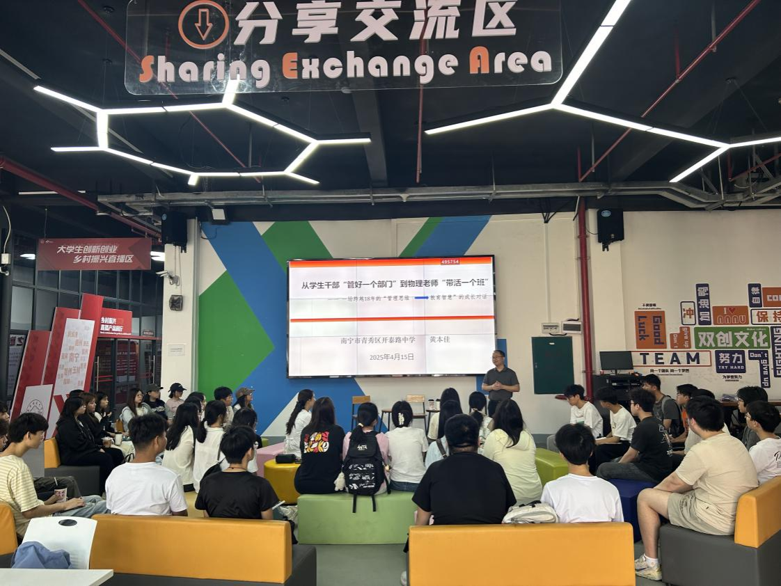 为进一步搭建校友与在校学子之间的交流平台,激励怀揣教育梦想的莘莘学子,167net必赢入口于4月16日上午在167net必赢入口创新创业孵化园成功举办了首期“师生共话 薪火相传”分享交流会。此次活动特别邀请了杰出校友黄本佳、林丽玲(现为青秀区开泰路中学教师)回到母校,与在校师生进行深入交流。