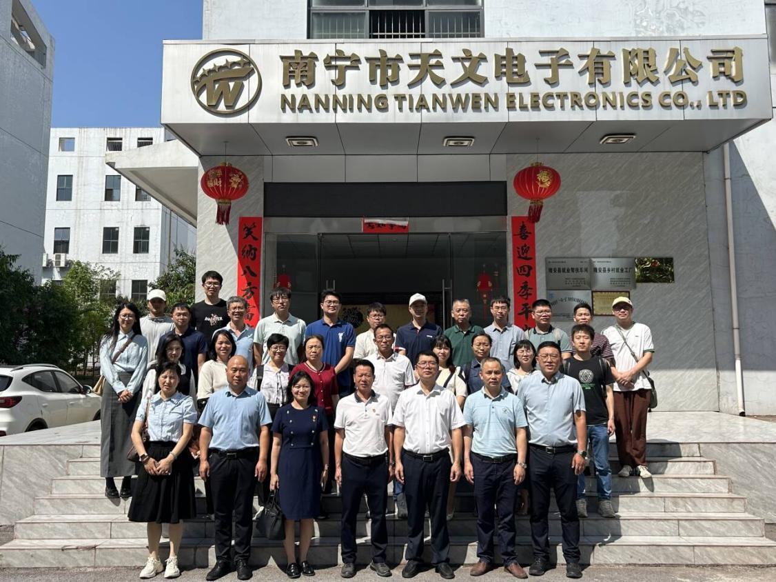 在天文电子有限公司,调研组参观了自动化生产线,与企业负责人就电子元器件技术研发、实习基地共建等合作方向交换意见。程津隆精密机械公司重点展示了数控五轴设备生产线,双方探讨了智能制造领域联合技术攻关的可行性。三礼电子公司作为台资企业,介绍了微型电感等产品研发进展,提出与高校共建电子技术实验室的意向。比亚迪试车场项目负责人详细讲解智能网联测试区规划,双方就新能源技术应用与汽车电子人才培养展开交流。副县长施勇表示,隆安县正以粤桂协作为契机,优化营商环境,期待校企深化合作,为电子信息、新能源等产业集群注入创新动能。